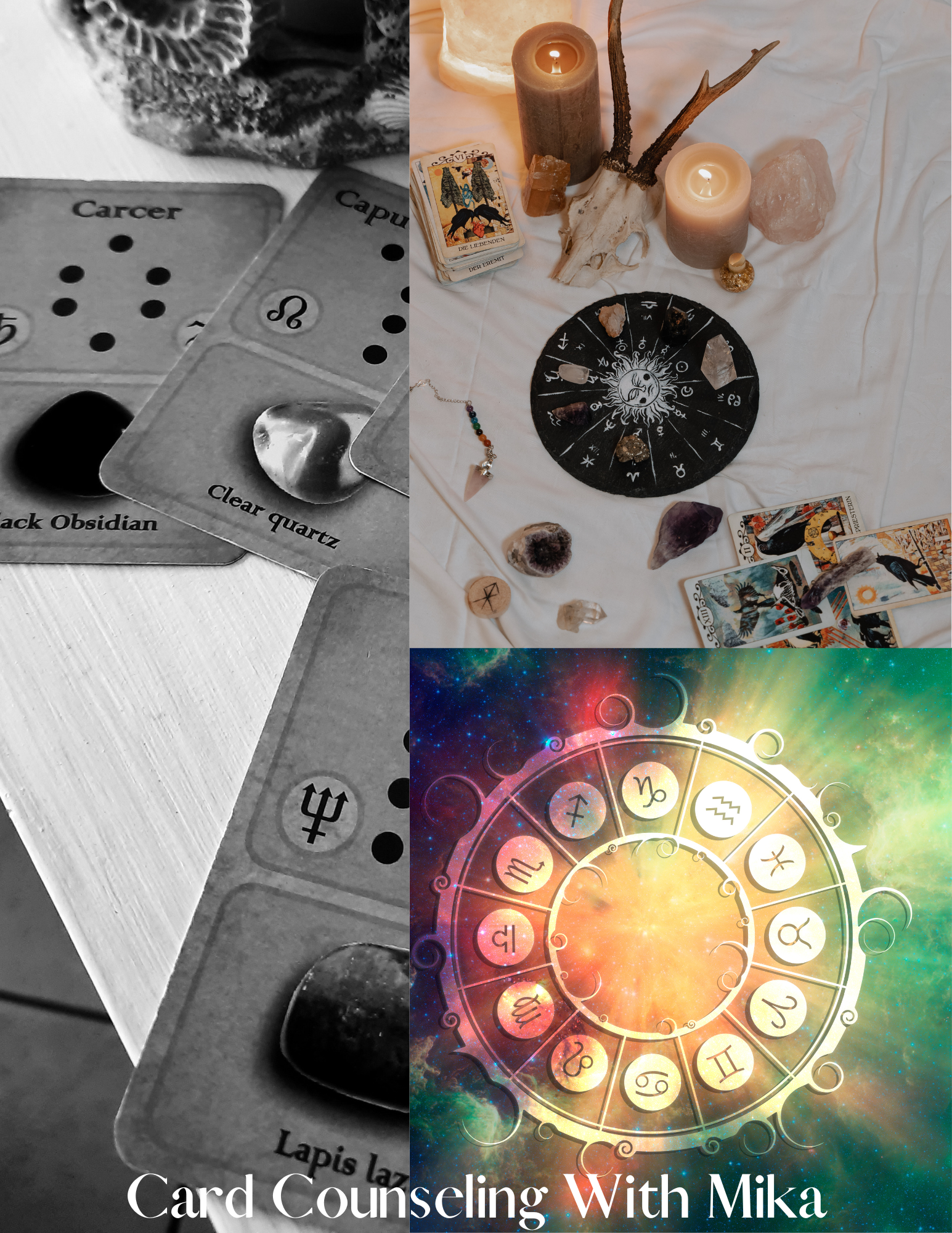 There are many levels which Card Counseling can help give clarity and direction with purpose to your life. Rather you are seeking guidance in life purpose, career, family or relationships with others I can help. I use several types of card to get to the information that will best server your inquiry.